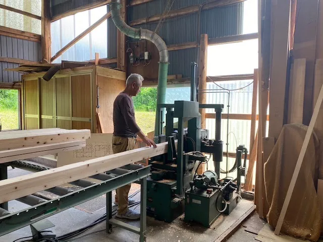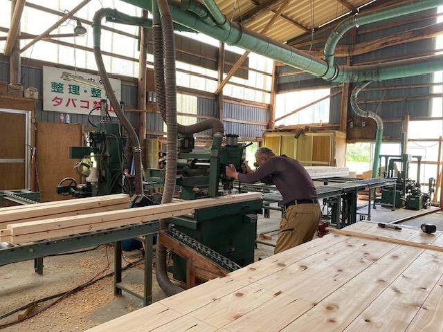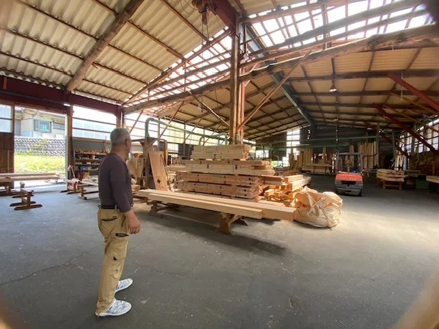 本社工場で、厳選した地元の原木を木挽きからプレカット、施工まで全てを行います。