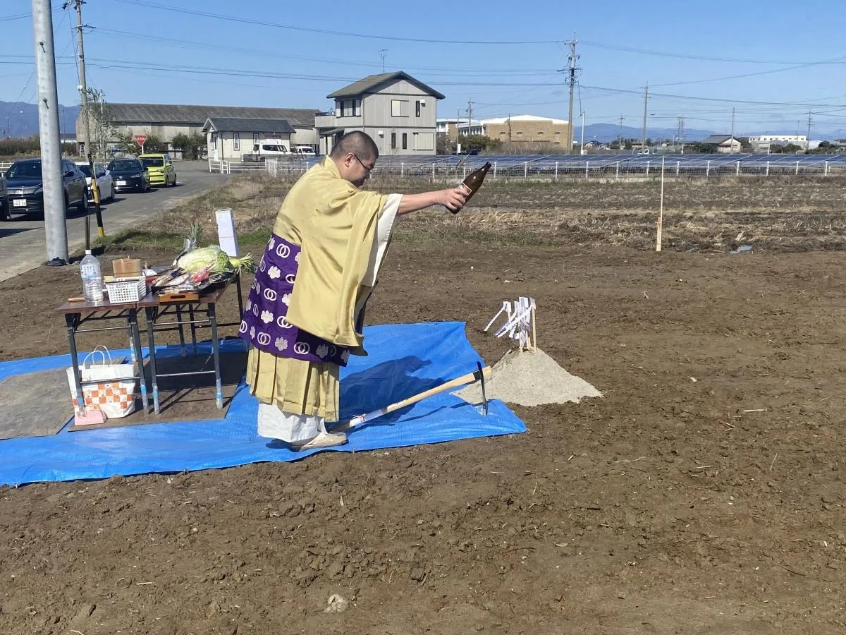 ☀愛知県愛西市M様邸 新築㊗地鎮祭の様子☀ 2018/05/01 地鎮祭の様子 昨日は、お天気も悪く本日の地鎮祭を心配しておりましたが、今日は、お天気に恵まれ地鎮祭を無事執り行うことが出来ました。 鍬入れの様子 鍬入れの様子です。地鎮祭はこれから行う建設作業においての安全祈願であり、建主および施工店、設計会社の共同作業です。 お知らせ