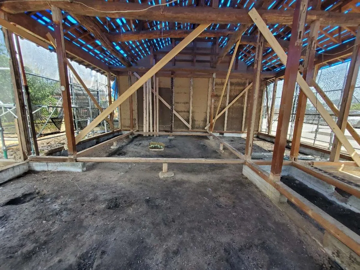 B様邸(大リフォーム工事) リフォーム前 完成 B様邸 大リフォーム! 長年住んでこられた家をリフォームしました。 既設建物の屋根下地、柱、その他の構造部分を残しつつ、県産材を使った無垢の家が完成しました。 心地よい木の香りに包まれ、和を感じられます。 解体後の様子