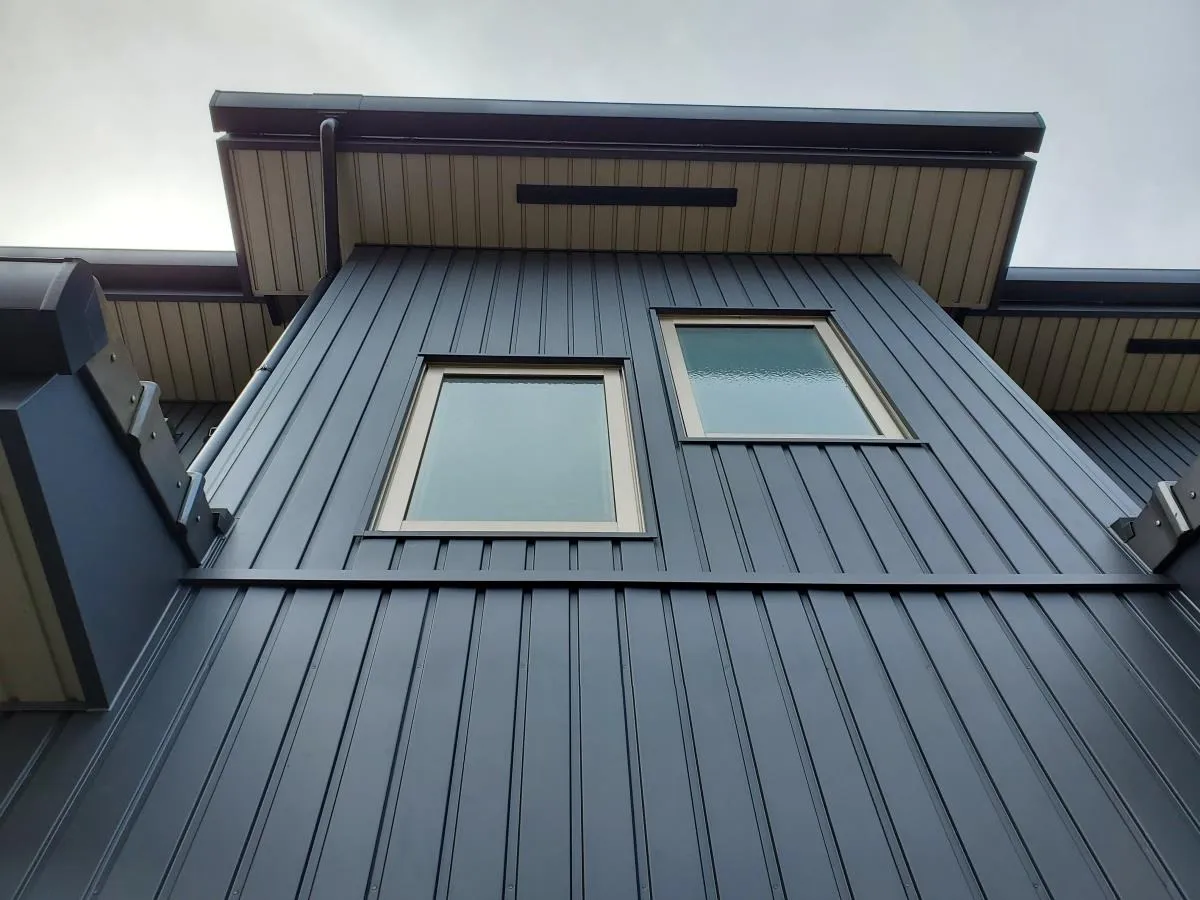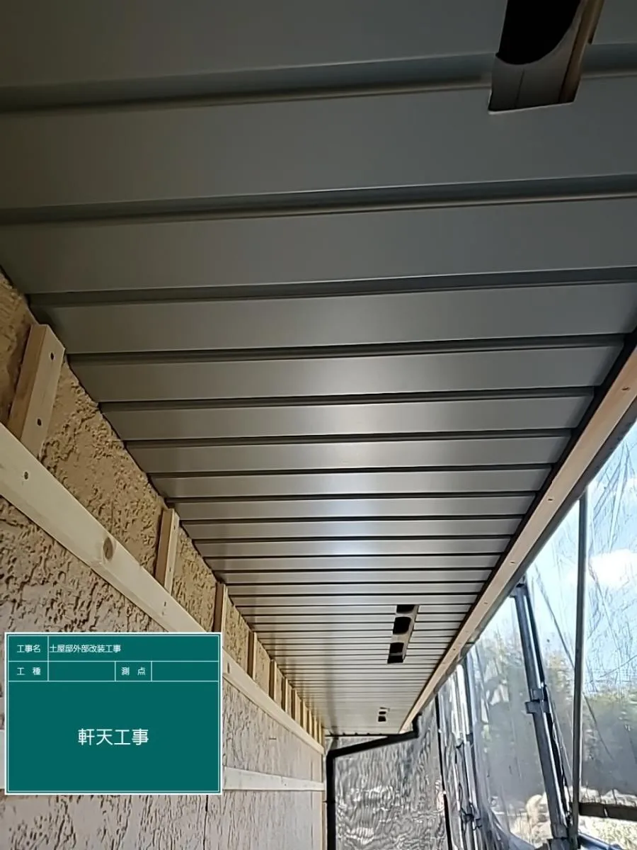 既設のサイディング外壁と軒天に胴縁を打ち、窓廻りは防水施工をして新しくガルバニュウム鋼板で外壁を仕上げました。