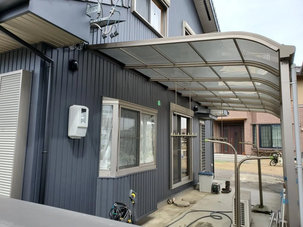 既設壁 サイディング張り→ 工事後はガルバニュウム鋼板張りで仕上げました。