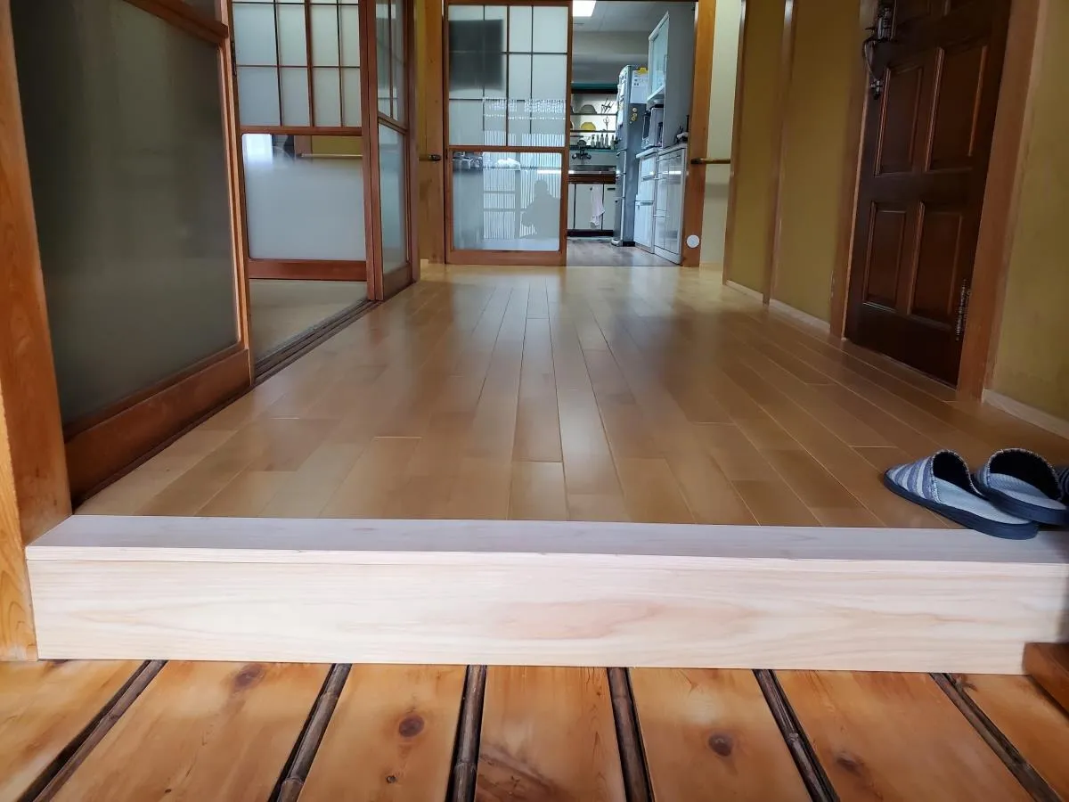 美濃加茂市 K様邸(リフォーム) 【工事前】玄関ホール 【工事後】玄関ホール 【工事前】BR,洗面脱衣室 解体工事 【工事前】BR解体工事 【工事後】LIXIL BR 【工事後】洗面脱衣室 既設の浴室は、タイル貼りの壁にステンレスの深い浴槽でした。 LIXILの浴室にリフォームして、使いやすい浴槽になりました。 脱衣室は、タオルなど収納できる使い勝手の良いオープンの棚を取付、お風呂ー脱衣室の動線が使いやすくなりました。