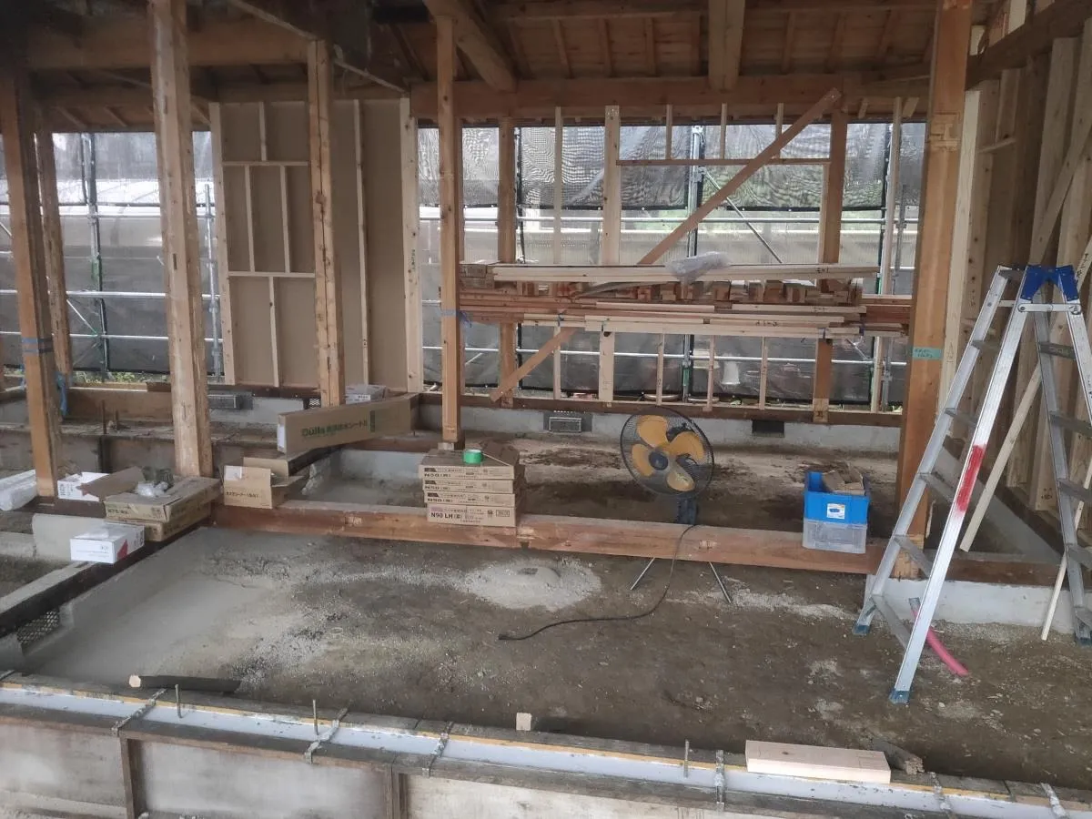 美濃加茂市 H様邸(リフォーム) 解体工事 仮設工事 基礎工事 美濃加茂市で築古の民家をリフォームさせていただきました。 屋根、柱、梁を残し、白蟻防蟻施工をしました。 木をふんだんに使って、開放感のある空間に仕上がりました。 造作工事