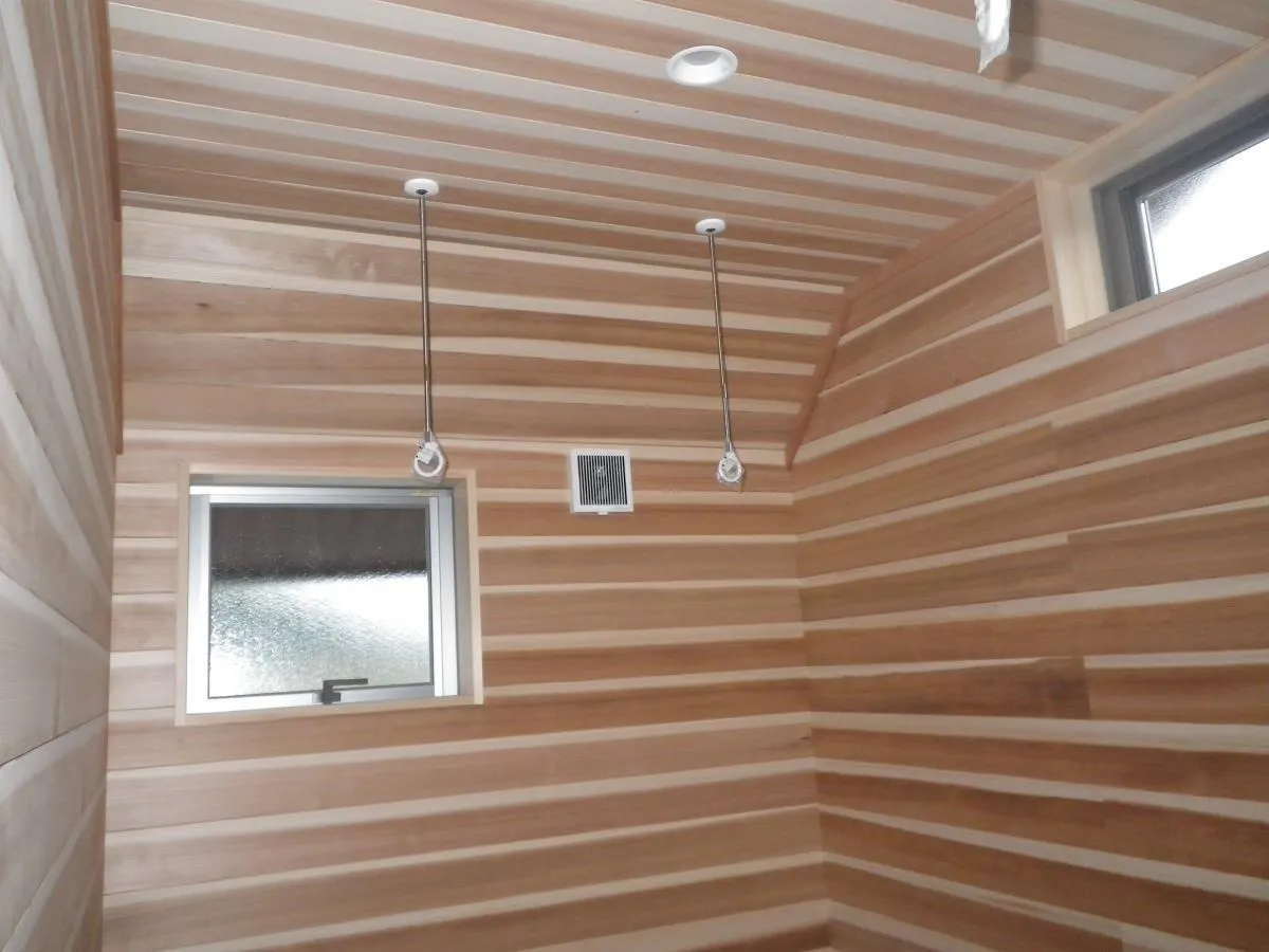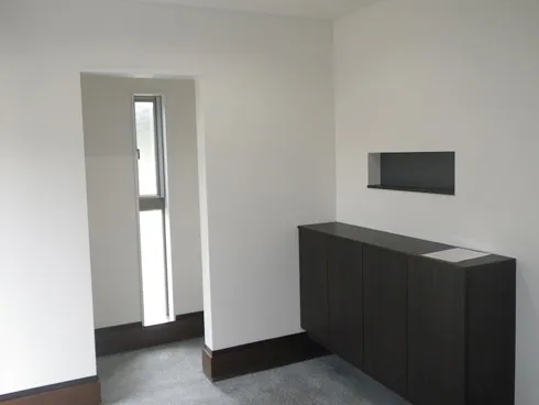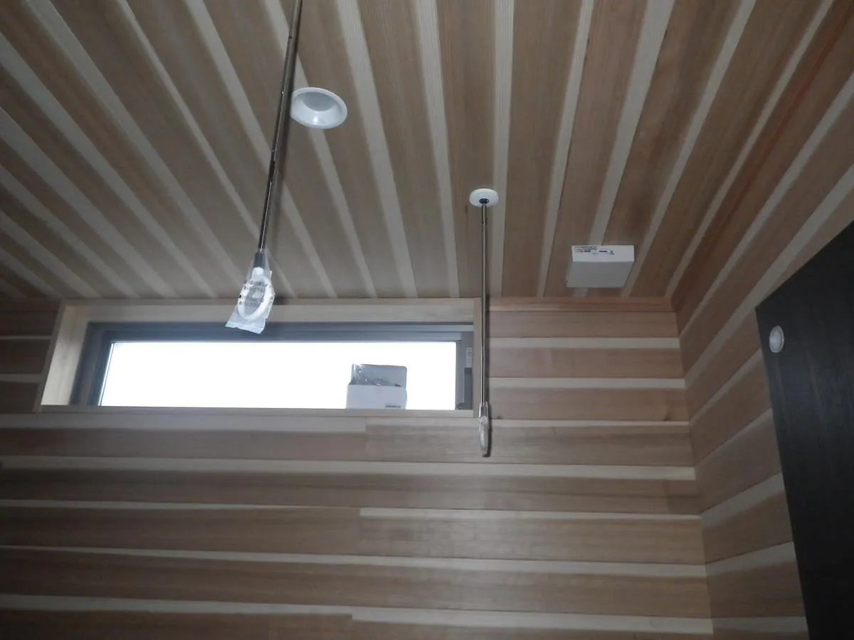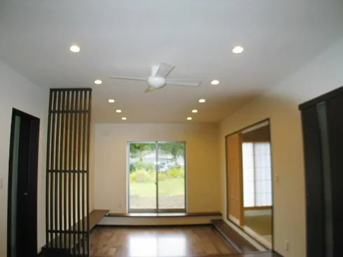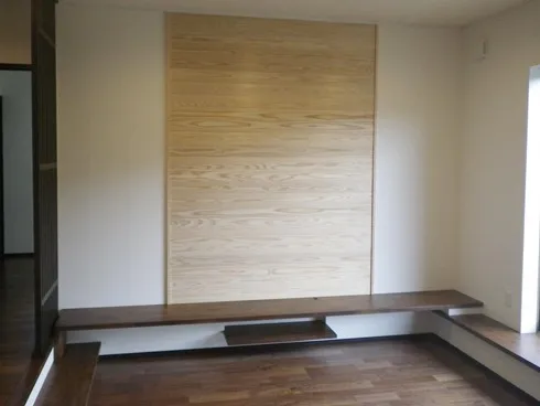 美濃加茂市 F様邸 サンクンリビングのある生活 段上、段下の空間を作ることによりメリハリができます。そして、リビングの天井が高く感じまますね!その段差の高さによってはベンチ代わりにもなって、好きな所に座ることができます。 LDK 玄関ホール 室内干しルーム 無垢材使用なので、洗濯物を干す空間に最適です。 洗濯物の生渇きの嫌なニオイも湿気も、部屋全面に張られた杉板が吸収! お客様が家を建てられた時から、木の香りが持続しているそうです。(^^♪。。 和室