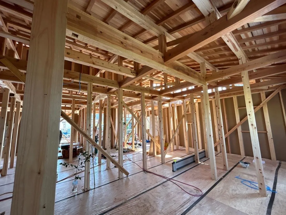 美濃加茂市 M様邸 2023.7.3 M様邸新築建方を行うことができました。 梅雨の時期ですが、朝から晴天に恵まれました。 国産材で造る木のぬくもりを感じる平屋建て 2023.07.04 外観 玄関 LDK キッチン収納棚 CLスクリーンカーテン クローゼットの扉をカーテンにすることにより、モノの出し入れ、モノの存在が見やすくなり使い勝手がよくなります。 WIC 杉板可動棚 木製デッキ